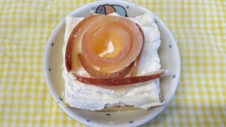 🍎今日はお誕生日会メニュー🎂みんなよく食べてくれていました😄おやつのケーキは旬のりんごでをバラの形にして作りました🎵