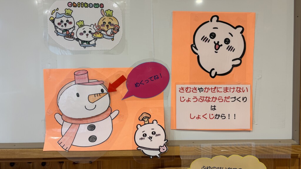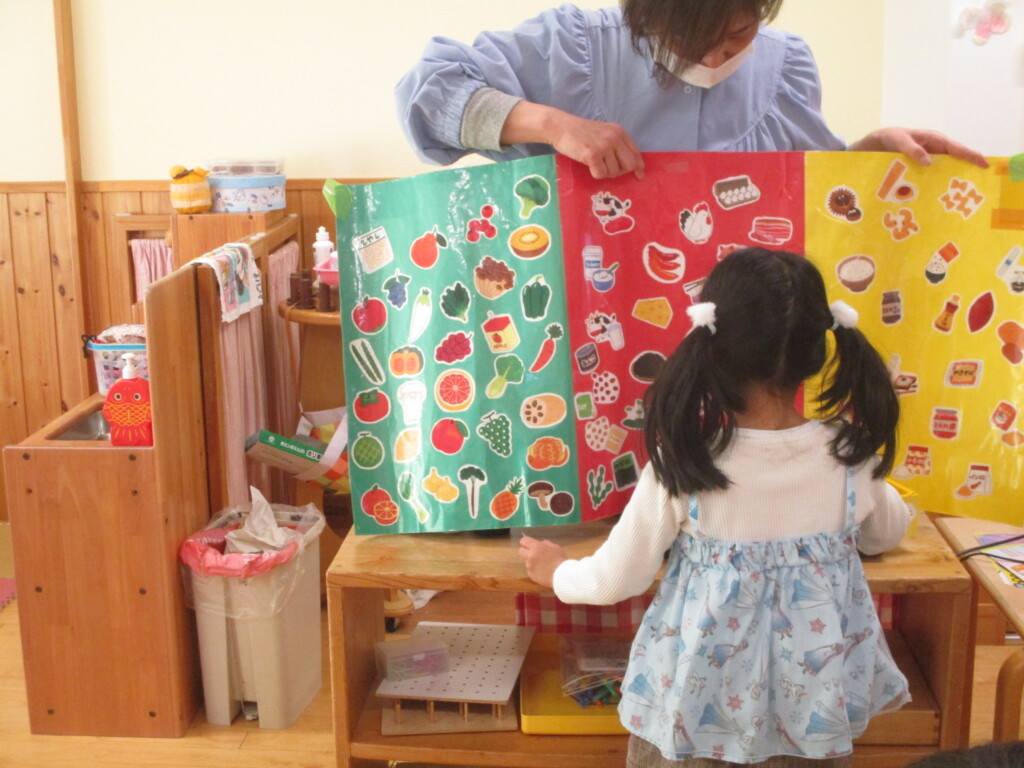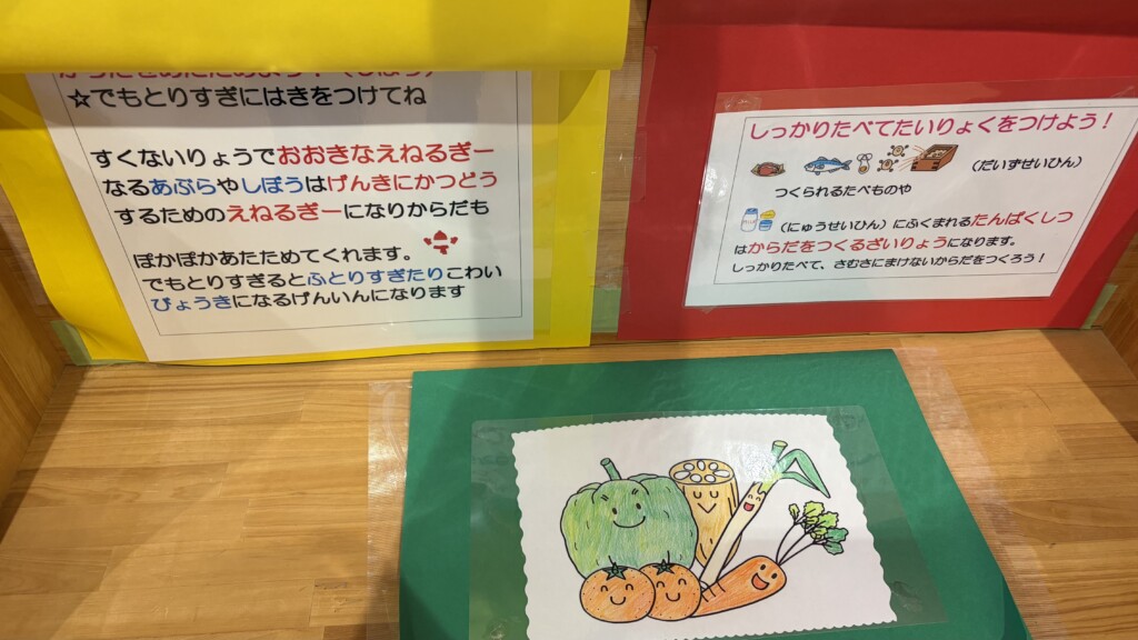 玄関の食育コーナーでも三色食品群の効能をやさしく説明しています。ぜひご覧ください!