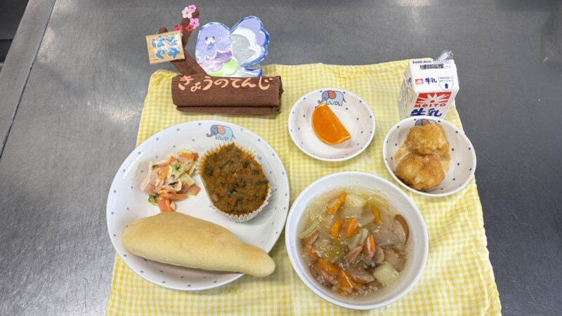 🍓リクエストメニューのナンとキーマカレーです。ナンにうまくのせて食べていましたが、ナンを先に食べてしまう子もいたようです😓