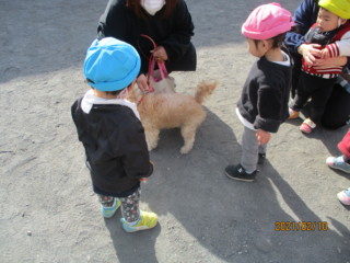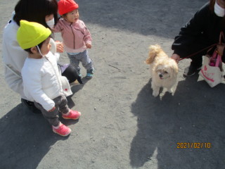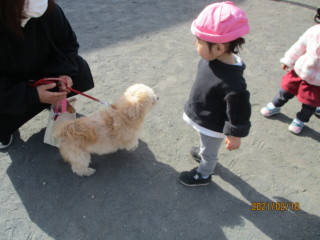 公園に着くとかわいいワンちゃんが来て大喜び!