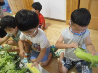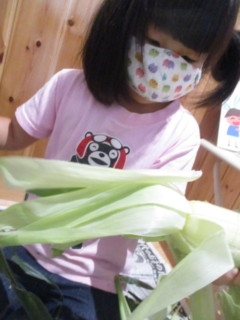 そこで昨年も行った皮むきを今年も行いました🌽