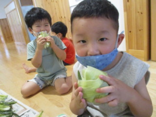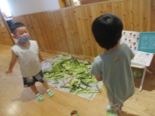 早速保育士と一緒にせっせと皮を集め、