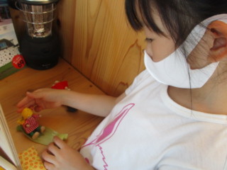 人形を寝かせドールハウスに入れて遊ぶ姿も。