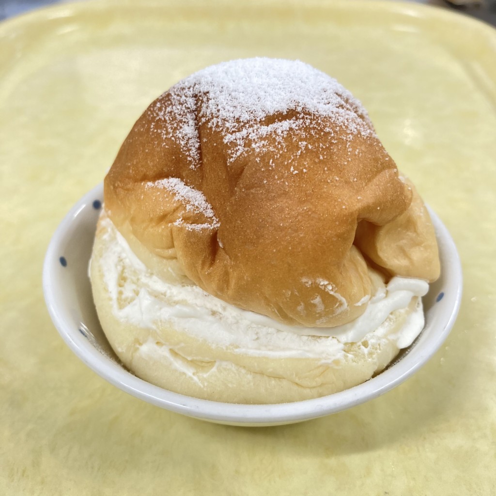 ❔マリトッツォとは❔ マリトッツォは最近話題になっていて コンビニなどでもよく見かけるスイーツパンです。 イタリア発祥のデザートで、ブリオッシュ生地に生クリームを挟んだもので 食べたイメージではシュークリームというよりは、クリームパンに近いです。 伝統的なものではレーズンなど砂糖漬けの果物が入ります。